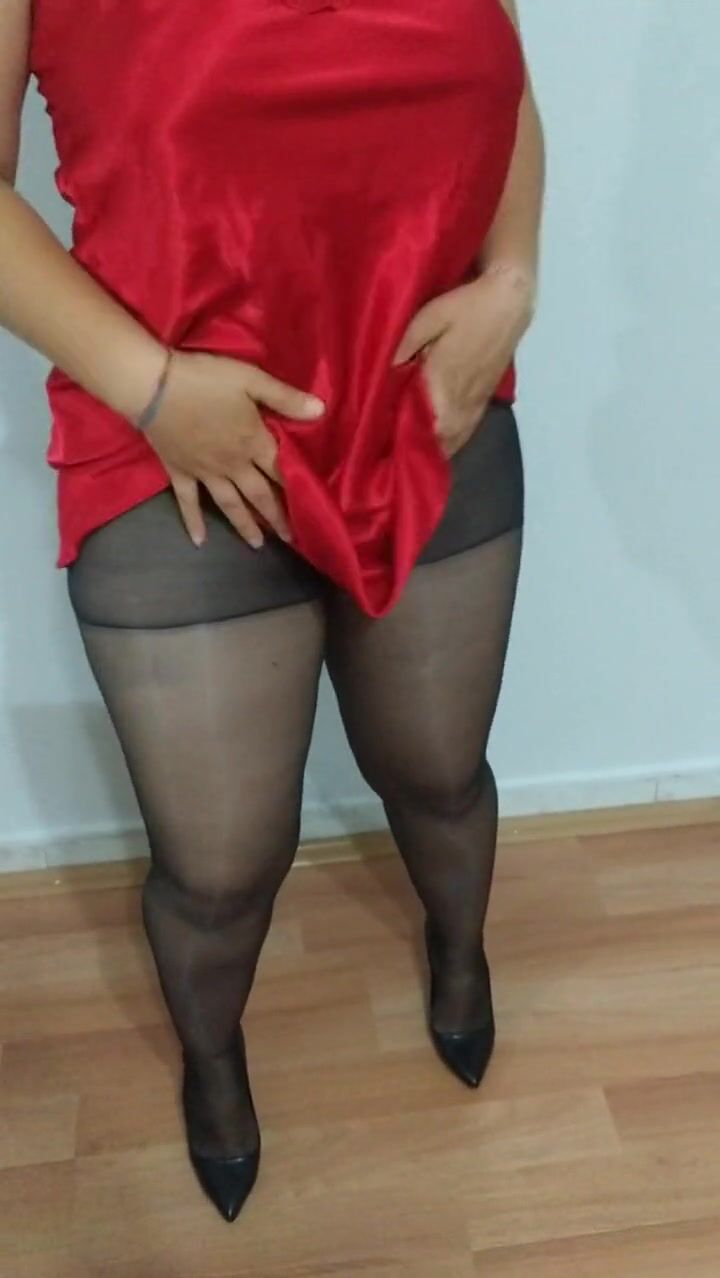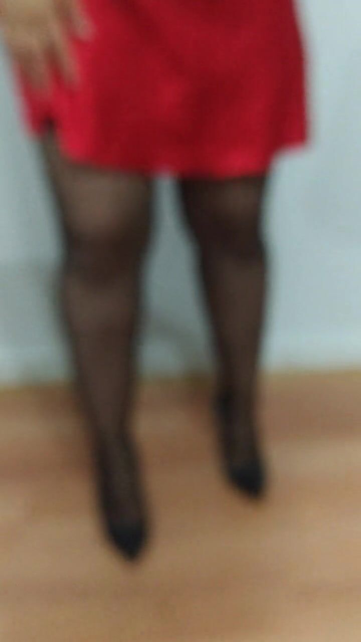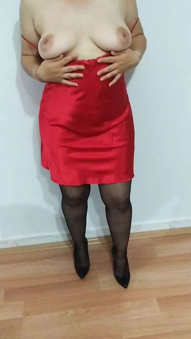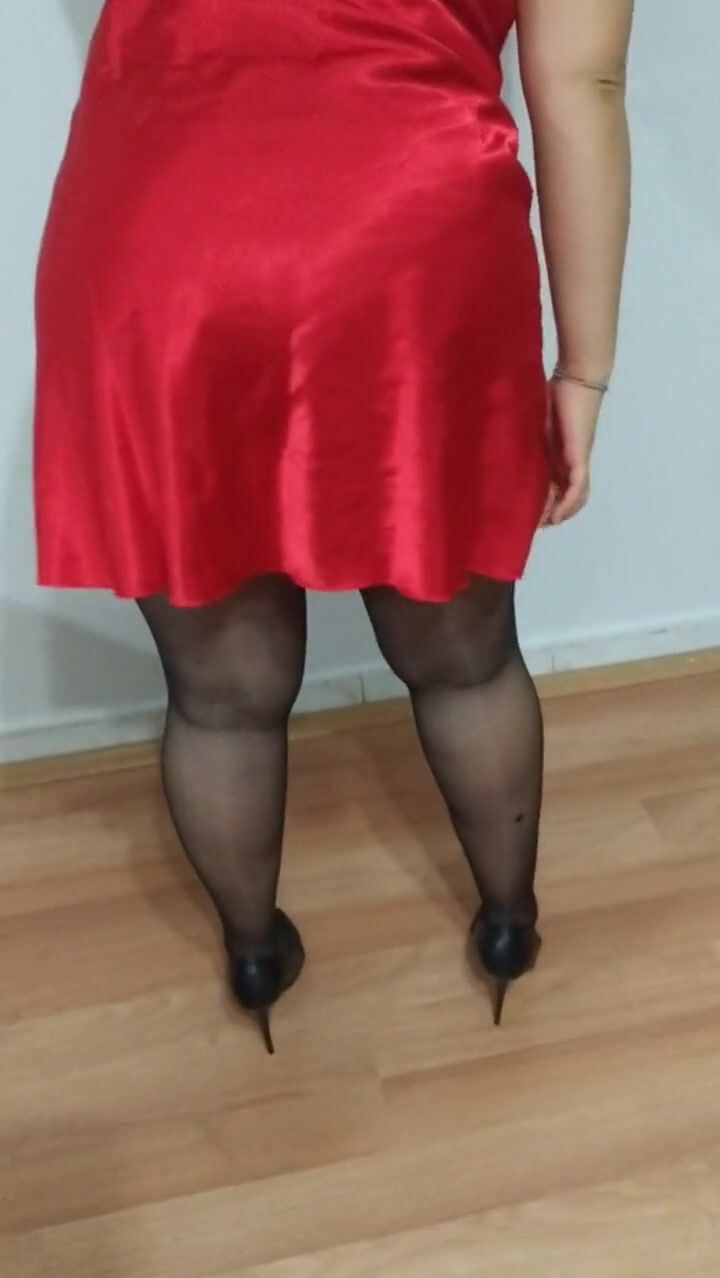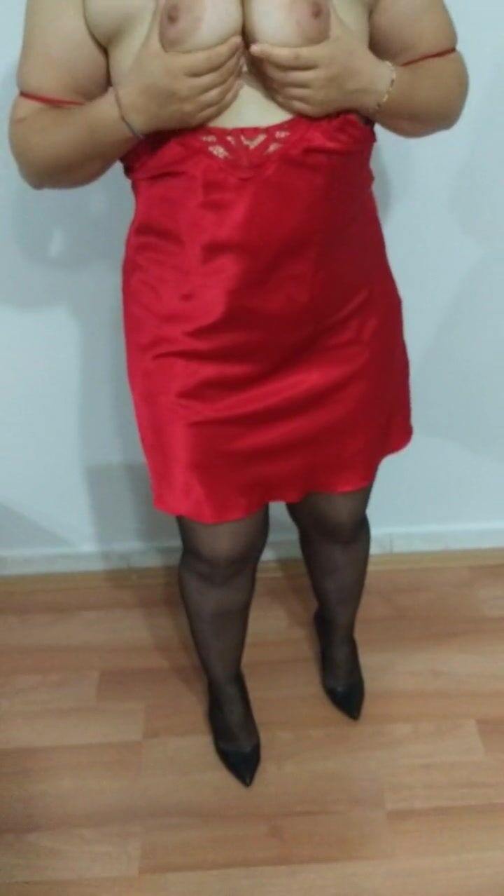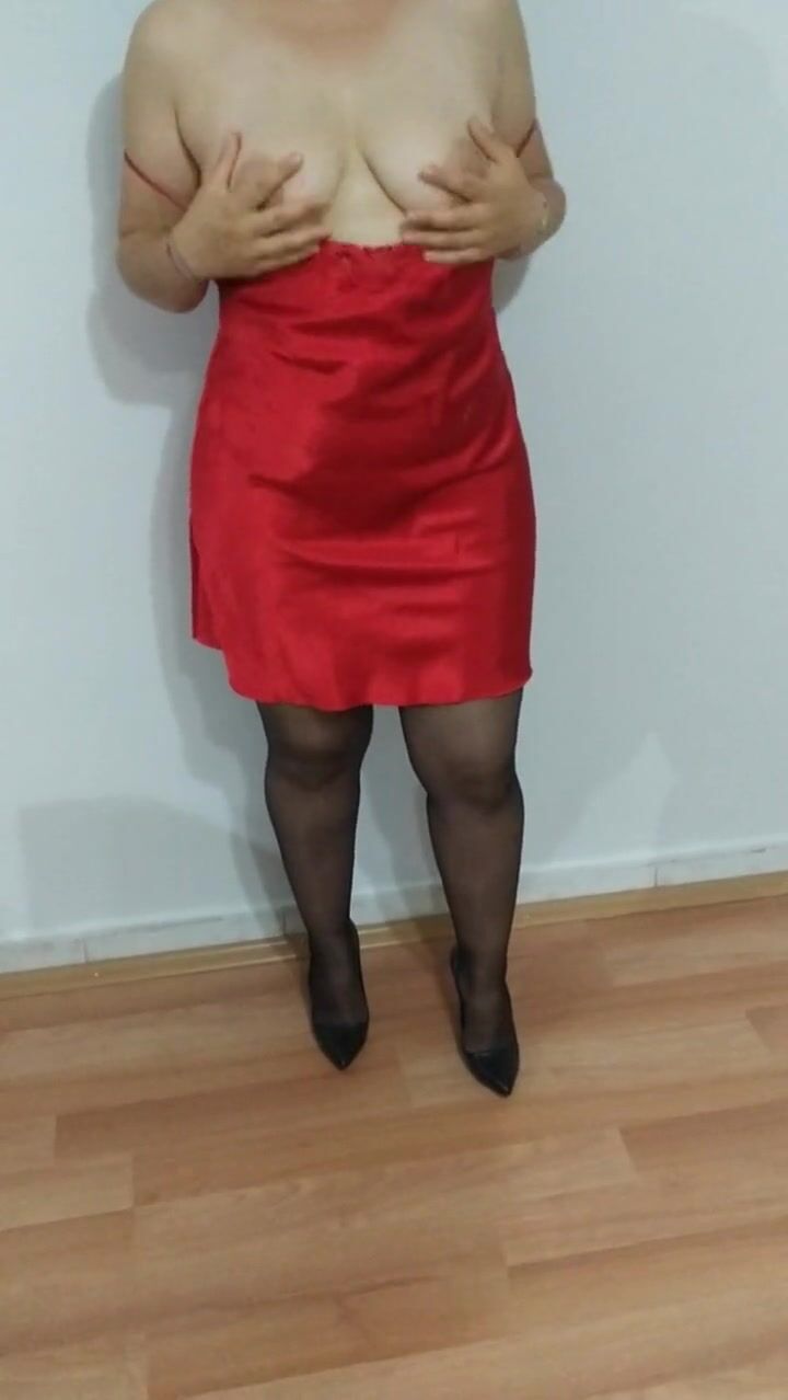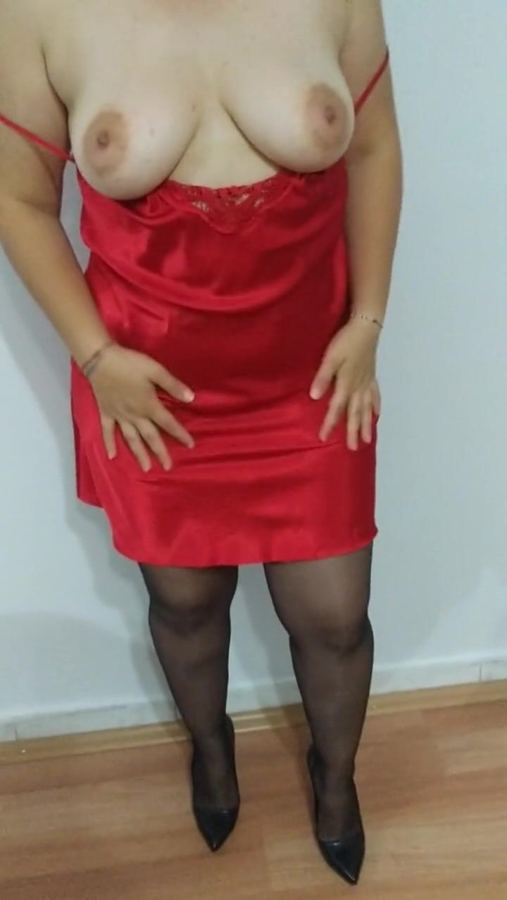 college girl wearing red nightgown
