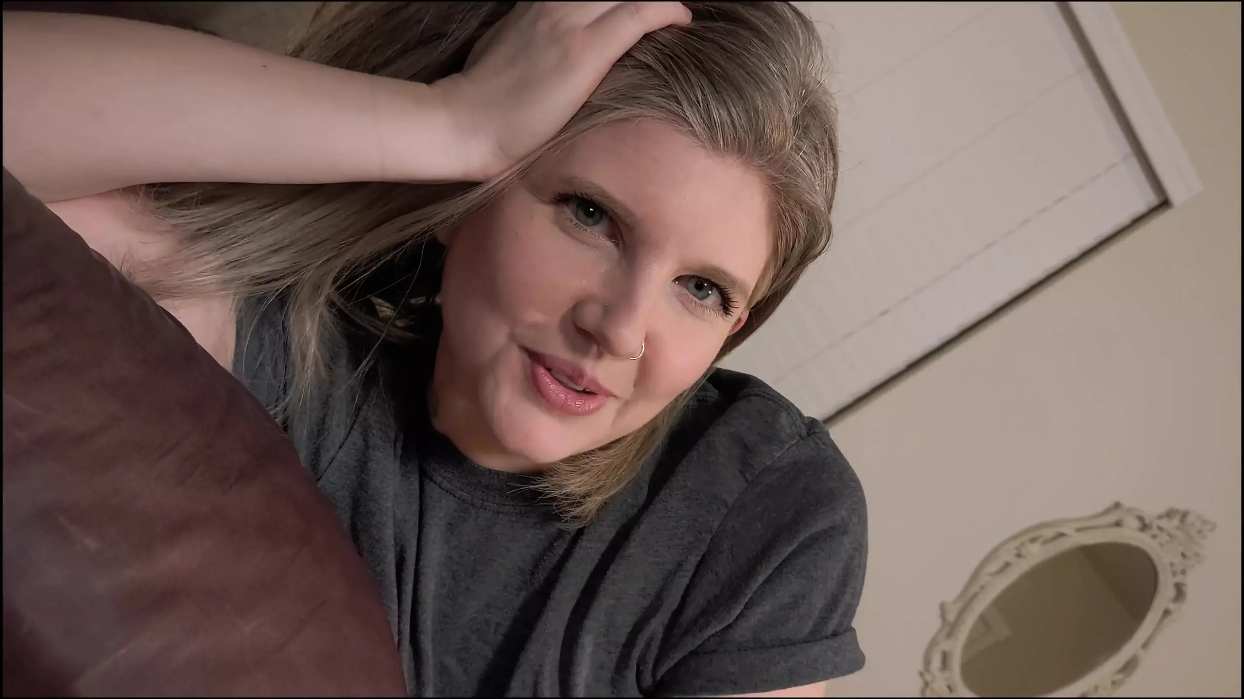 Dutch girl with needle pierced tits sucks cock and gets his cum in her eye