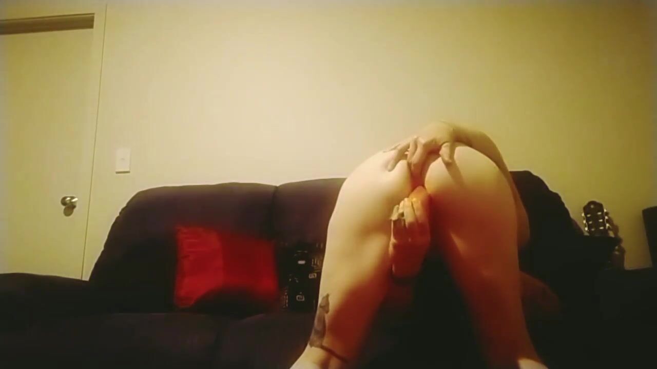 Fucking my pussy with a carrot while fingering my ass