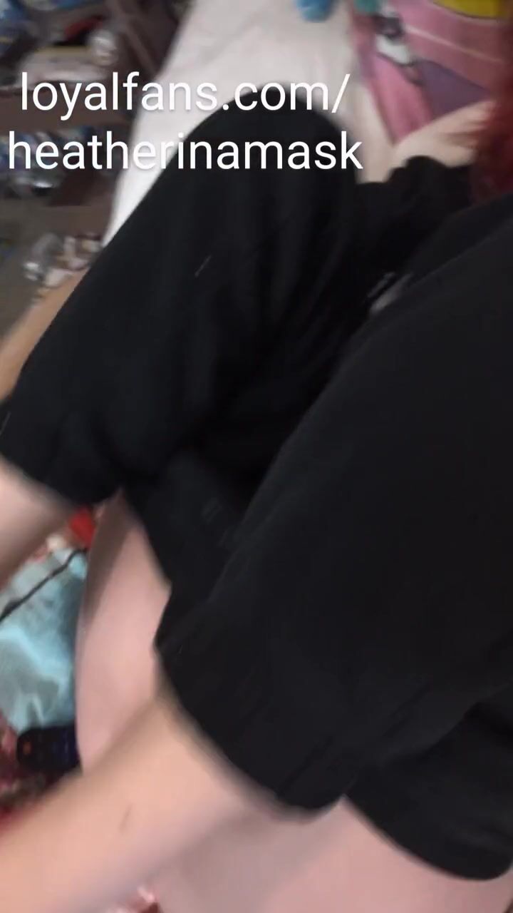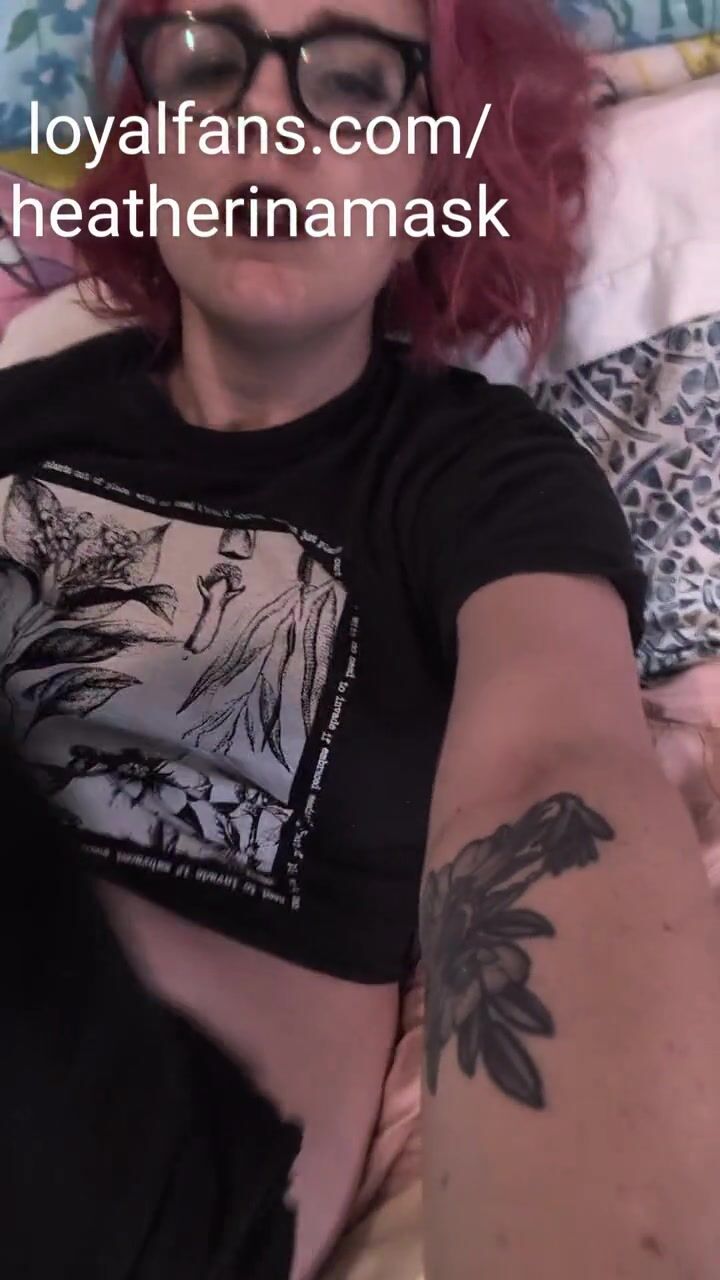 Goth MILF in glasses and sweatpants squirts from dildo
