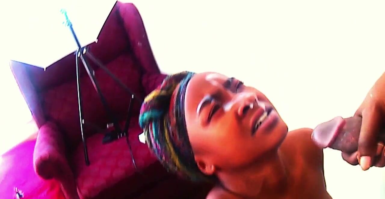 Dutch girl with needle pierced tits sucks cock and gets his cum in her eye