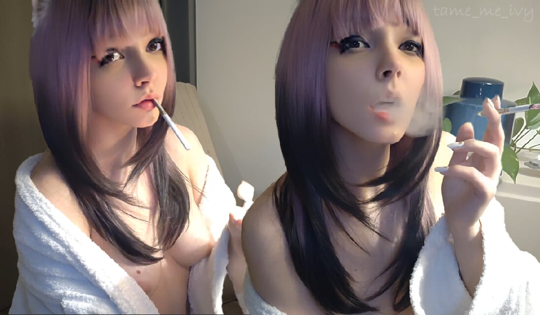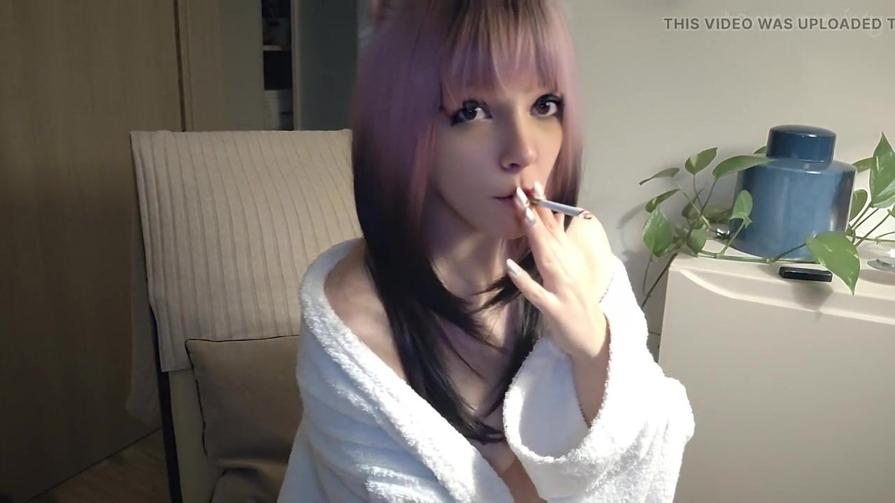 Small titties gamer in bathrobe smoking (ask me for full vid)