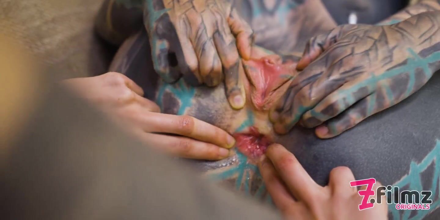 TATTOO girl masturbating, fingering her pussy and ass, fucks her ANAL with a toy and GAPES prolapse