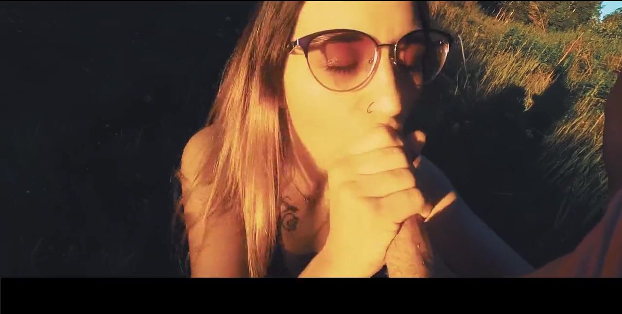 Dutch girl with needle pierced tits sucks cock and gets his cum in her eye