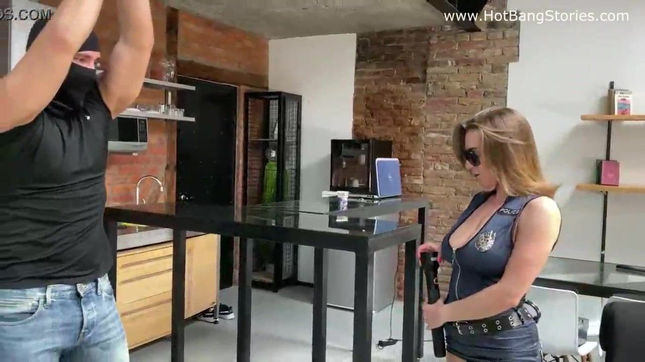 Vicious Cop Josephine Jackson gives femdom handjob to a robber